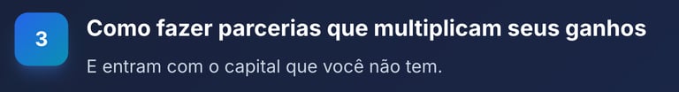 "O ebook abriu minha mente. Consegui fechar 3 parcerias e hoje tenho renda mensal que nunca imaginei."